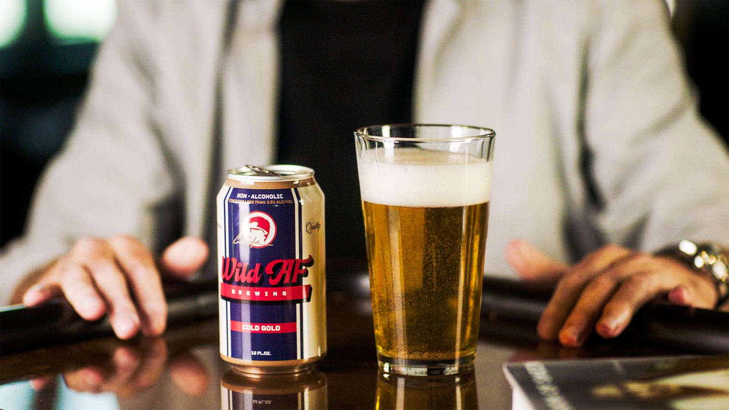 Wild AF “Cold Gold” is a crisp, golden craft brew with a hint of citrus, toasted malt, and a clean finish. It’s the ultimate ballpark beer without the booze: real beer, zero aftermath.
